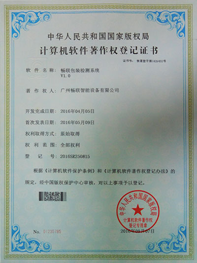 荣誉证书 高薪技术企业 广东省包装行业商会第一届理事会常务理事单位 广东机电设备合作伙伴 畅联包装检测系统软件著作权.jpg 畅联包装机自动码垛系统软件著作权 畅联包装机终端控制系统软件著作权 畅联包装机西林瓶包装控制系统软件著作权 畅联包装机激光打码机系统软件著作权.jpg
